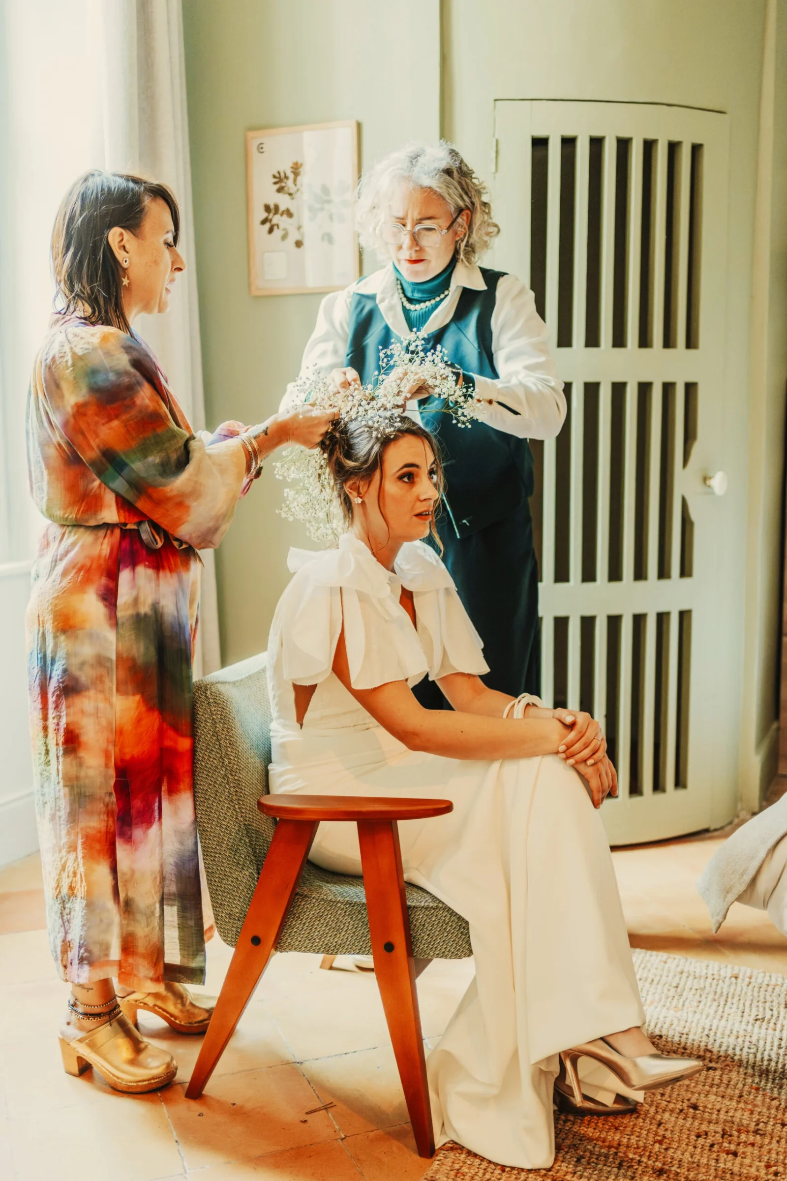 - Mise en beauté (esthéticienne et coiffure) pour la mariée et ses demoiselles d’honneurs, dans la Chambre des marié.e.s ou la Suite Camboyer